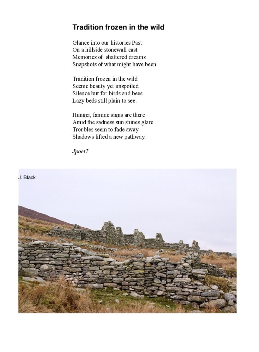 a visit last year to one of my favourite places, Achill island off the west coast of Ireland prompted me to pen these words . A deserted village captures the mood of the time around the famine and also remembers those who travelled to Scotland to pick potatoes in times past.